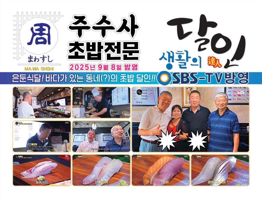 특모듬초밥 25,000 | 모듬초밥 20,000 | A코스 46,000 | B코스 36,000 | 특모듬회 54,000 | 모듬회 49,000 | 장어초밥 26,000 | 광어초밥 26,000 | 연어초밥 25,000 | 새우초밥 13,000 | 회덮밥 16,000 | 장어덮밥 16,000