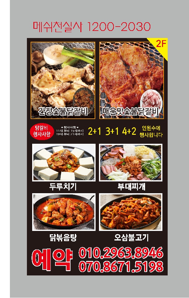 철판닭갈비 16,000 | 물,비빔막국수 10,000 | 계란찜 6,000 | 감자전병 7,000